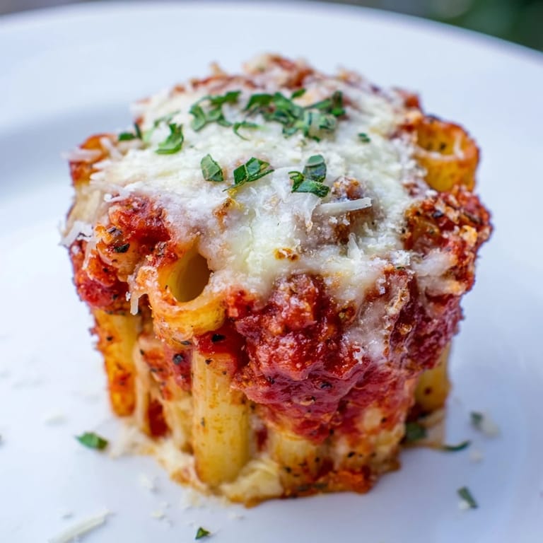 Pin I discovered these baked ziti cups by accident on a Tuesday afternoon when my muffin tin caught my eye while searching for a baking dish. Something clicked—what if I treated pasta like a handheld treasure, something you could grab warm from the oven without a plate? The first batch came out crispy on top and creamy inside, and I realized I'd stumbled onto the perfect solution for the constant question of what to cook when everyone's hungry at different times.