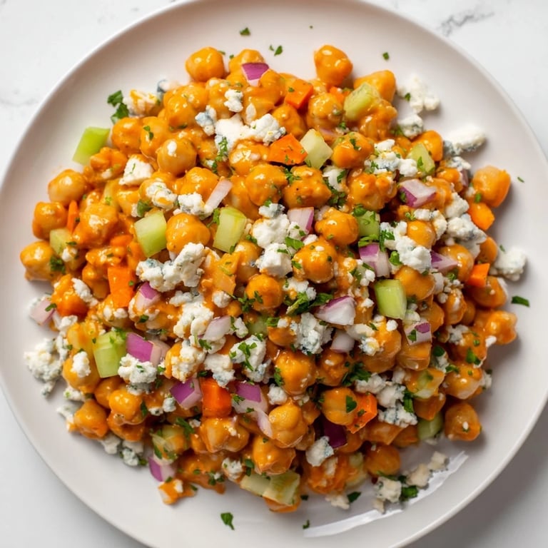 Pin I threw this together on a Tuesday night when I had zero energy but needed something that tasted alive. The chickpeas were already in the pantry, the celery was getting soft, and I had half a bottle of buffalo sauce begging to be used. What came out of that bowl surprised me—it was bright, punchy, and somehow exactly what I wanted without planning a single thing.