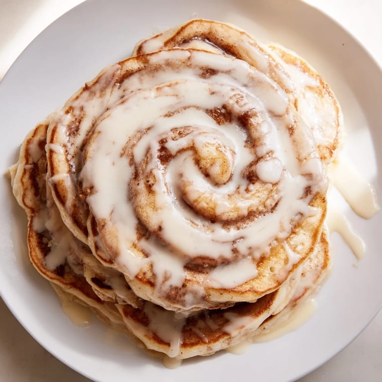 Pin My kitchen smelled like a cinnamon roll factory the morning I first experimented with swirling cinnamon sugar directly into pancake batter. What started as a lazy Sunday idea—combining two breakfast obsessions into one plate—turned into something so ridiculously good that I stopped ordering cinnamon rolls from the bakery altogether. The fluffy pancakes absorbed that buttery cinnamon magic while cooking, and when I drizzled on the cream cheese glaze, my teenage son looked up from his phone for the first time that week. Some dishes just have that power to stop people mid-scroll.