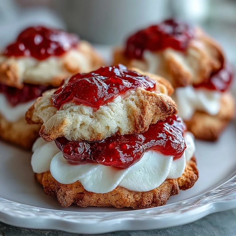 Pin My neighbor Margaret handed me a plate of these cookies last summer with the kind of knowing smile that said she'd been holding onto the recipe for years. The moment I bit into one, I understood why—that buttery snap giving way to creamy clotted cream and jammy sweetness felt like biting into a memory of a proper English afternoon, even though I'd never actually had one. What struck me most was how simple the ingredient list looked, yet how elegant the final result tasted. I spent the next week making batch after batch, each time tweaking the ratio of cream to jam until it felt absolutely right.