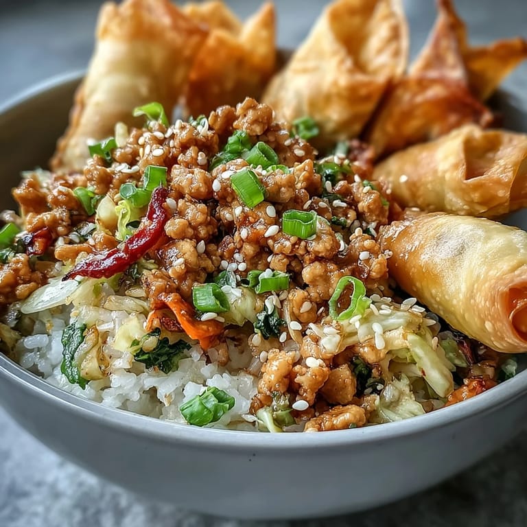 Pin My sister called one weeknight asking what I was making for dinner, and when I described this crispy baked egg roll bowl situation, she literally drove over mid-cooking. That's when I knew it was something special—the kind of dish that makes people abandon their plans. It's got all the comfort of a classic egg roll but served in a bowl, which somehow makes it feel fancier and easier at the same time. The real magic happens when you bite through those crispy wonton strips into the savory chicken and cabbage beneath.