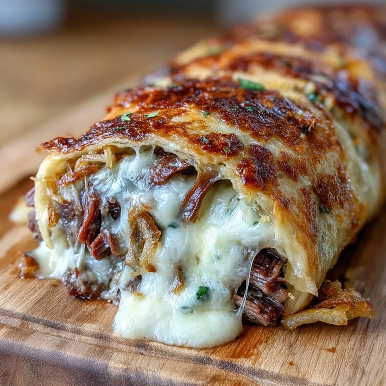 Pin French Dip Tortilla Roll Ups prove that comfort food doesn't have to be complicated. With a short ingredient list, a quick assembly, and just 10 minutes in a hot oven, you'll have a platter of golden, crispy, cheesy roll ups ready to impress — and a steaming bowl of rich au jus ready for dipping. Whether they disappear as a game-day snack or anchor a weeknight dinner, one thing is certain: nobody will be leaving the table unsatisfied.