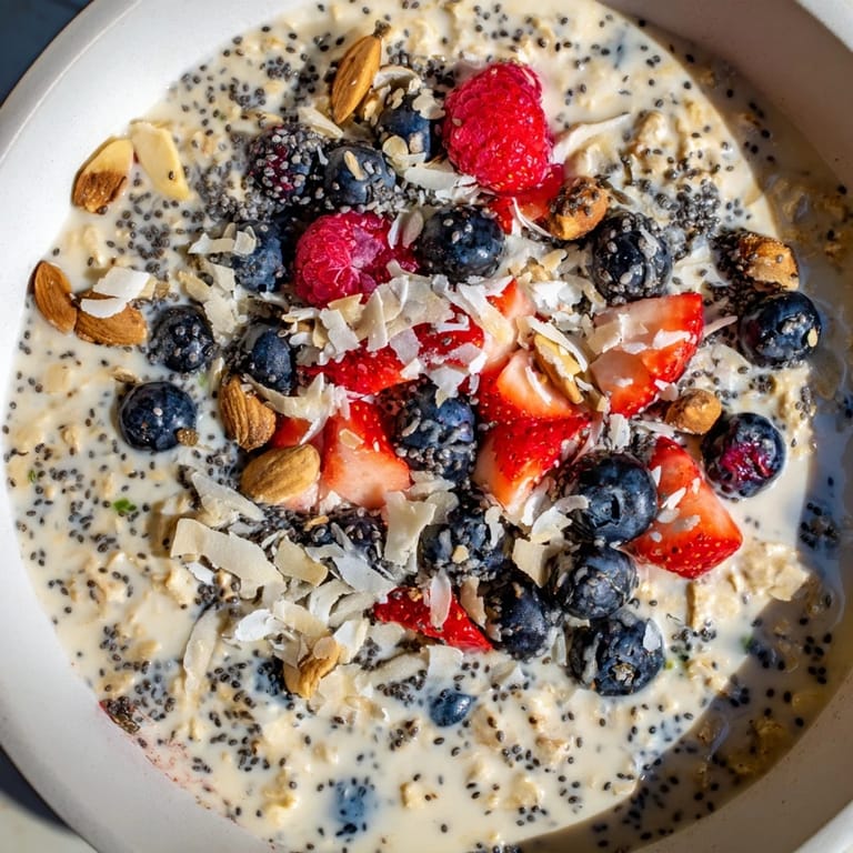 - Top each serving with fresh berries, chopped nuts, and shredded coconut if desired.