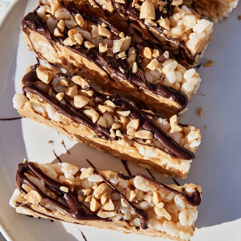Pin There's something almost magical about watching chocolate set on top of peanut butter—that moment when the kitchen gets quiet and you're just waiting for something so simple to become irresistible. I stumbled onto these rice cake bars on an afternoon when I had exactly three ingredients and zero patience for baking, but somehow that constraint became the whole point. They're the kind of no-fuss treat that sneaks into your freezer and vanishes before you realize how many you've made.