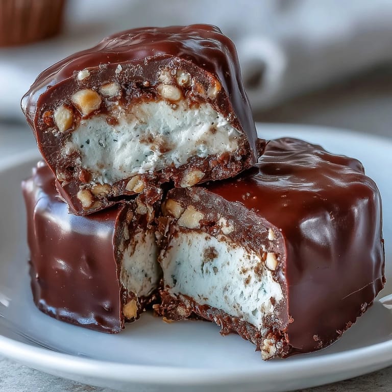 These keep in the freezer for weeks, which is either a blessing or a problem depending on your self-control. I like keeping them in individual portions so I grab just one or two instead of mindlessly eating half the batch. The magic window for eating them is right after they've been at room temperature for a few minutes—the chocolate is still snappy but the filling is starting to soften, and that contrast is what makes them feel special.