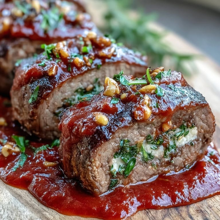 Pin The smell of simmering tomatoes always takes me straight back to my neighbor Rosa's kitchen, where I first saw her tying up these little beef bundles with the kind of speed that comes from doing something a thousand times. She didn't measure anything, just sprinkled and tasted, and when I asked for the recipe, she laughed and said it was different every time. I've been making my own version ever since, and while mine are never quite as effortless as hers, they still fill the house with that same warm, garlicky comfort. There's something deeply satisfying about rolling up all those sweet and savory bits inside a thin slice of beef and watching it transform in the sauce.
