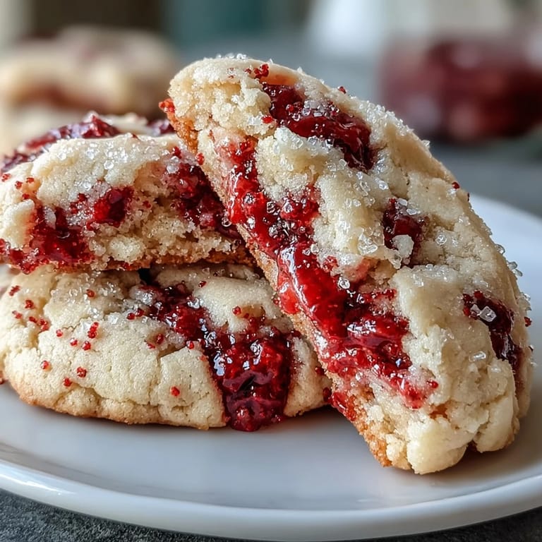 Pin A tray of these cookies sat cooling on my counter one July afternoon when my neighbor knocked to borrow a lemon. She left with the lemon and three cookies, then texted me an hour later asking for the recipe. The combination of soft, chewy dough and those little pockets of tart raspberry had won her over completely. I've been making them ever since, tweaking the freeze-dried raspberry coating until it sparkled just right. They're the kind of cookie that disappears fast, leaving only a few pink crumbs and happy faces.