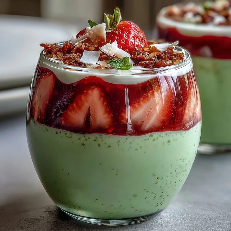 This recipe is wonderfully adaptable to your dietary needs and taste preferences. For a fully vegan version, use plant-based yogurt and maple syrup instead of honey. Substitute blueberries or mango for the strawberry layer to create entirely different flavor profiles—blueberry creates a gorgeous purple hue, while mango adds tropical sweetness. If matcha isn't your favorite, try replacing it with vanilla yogurt mixed with a pinch of spirulina for color, or use plain coconut cream for a neutral white layer. You can also experiment with different milk bases: oat milk creates extra creaminess, while coconut milk adds tropical richness. For added protein, stir a scoop of vanilla protein powder into the chia pudding base.