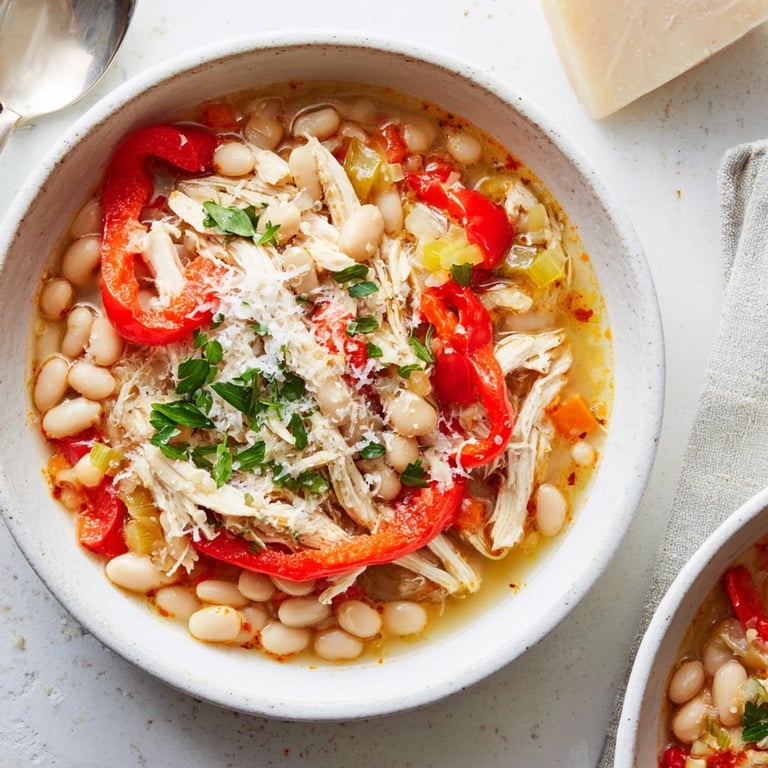 Pin I threw this together on a rainy Tuesday when I had leftover rotisserie chicken and a jar of roasted peppers sitting in the back of my fridge. The smell of smoked paprika hitting the hot oil brought my neighbor to the door asking what I was making. It turned into one of those accidental recipes that tastes way better than the effort suggests. The beans soak up all the flavors, the peppers add this gentle sweetness, and the whole thing just works. Now its my go-to when I want something warm and filling without spending an hour in the kitchen.